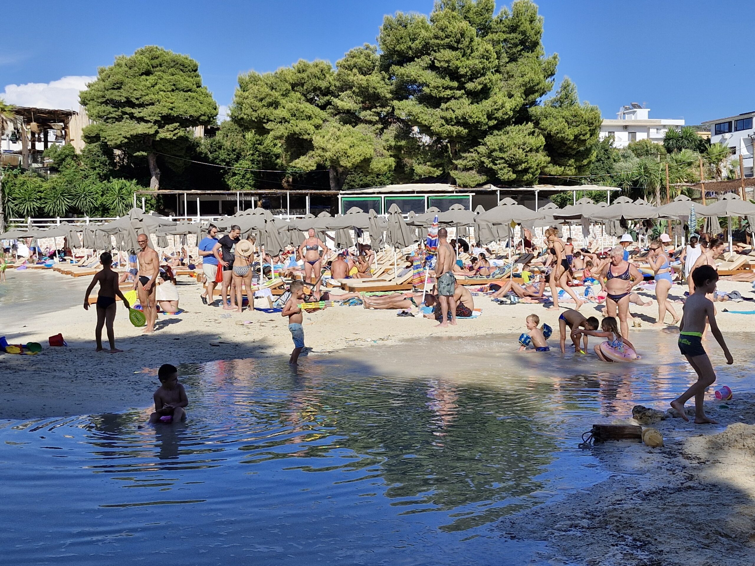 Ksamil, a popular holiday destination in Albania built up with hotels and apartments. We planned to spend half the day there and the rest in Saranda. We run away from Ksamil after 30 minutes, and we didn’t even make it to Saranda.