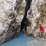 Beautiful Holt Canyon (Kanioni and Holtes) with various depths of blue, sometimes warm (supposedly), and sometimes very cold, sulfur-smelling water. The walls of the gorge are grayish, which matches the color of the springs flowing between them. You can walk on the streams, and I don’t remember stepping in a place where the water was warm. My task was only cold.