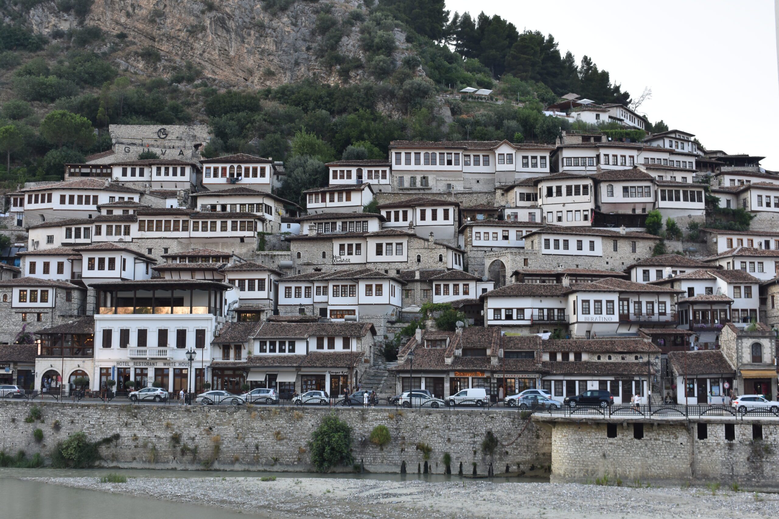 Berat – called the city of a thousand windows and probably the most beautiful city in Albania. Indeed, delightful with a very nice atmosphere. There’s a nice castle there, from which there is a beautiful view of Berat (better in the evening) and where there’s a beautiful little orthodox church.