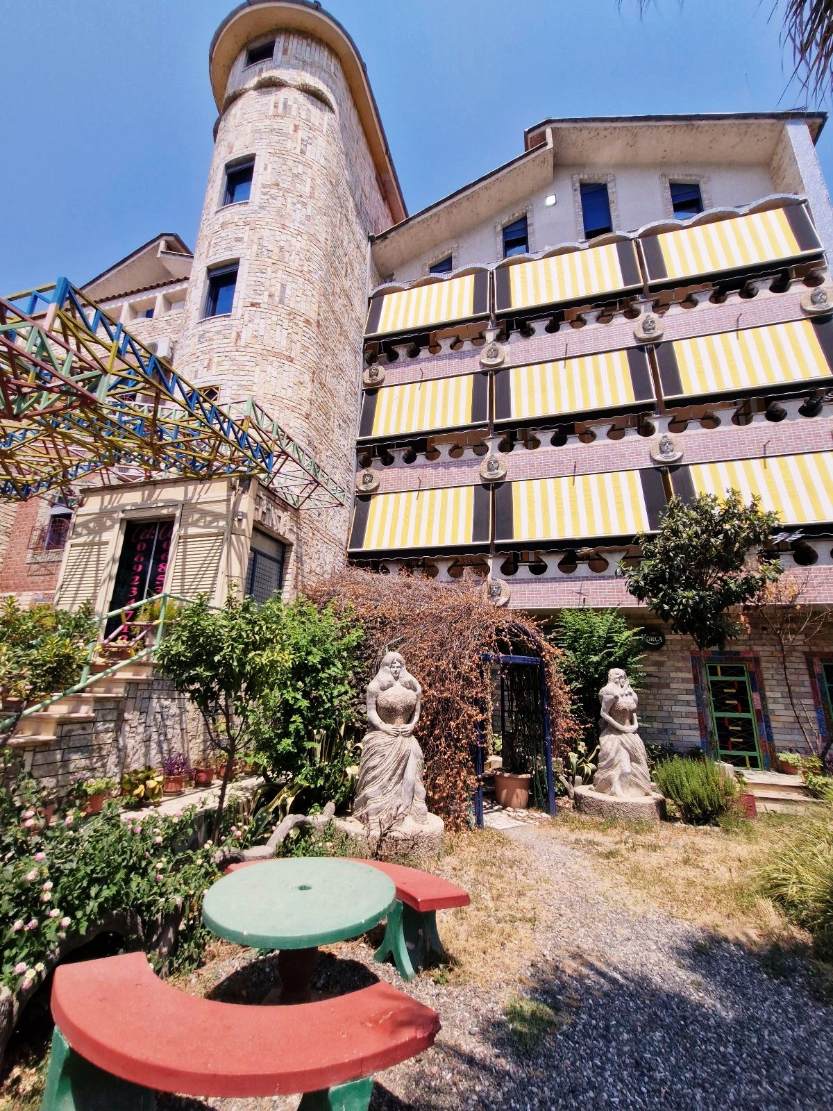 Buildings – I wouldn’t say it’s a surprise, because it wasn’t my first time in the Balkans, so Balkan architectural fantasy isn’t foreign to me. Despite this, some buildings shocked me. The biggest wonder that just hit me in the eye was the hotel in Elbasan. Apart from the building itself, gosh… what was there! Deer, lanterns, a booth, hippolytes, women with tits, bears, pink benches…
