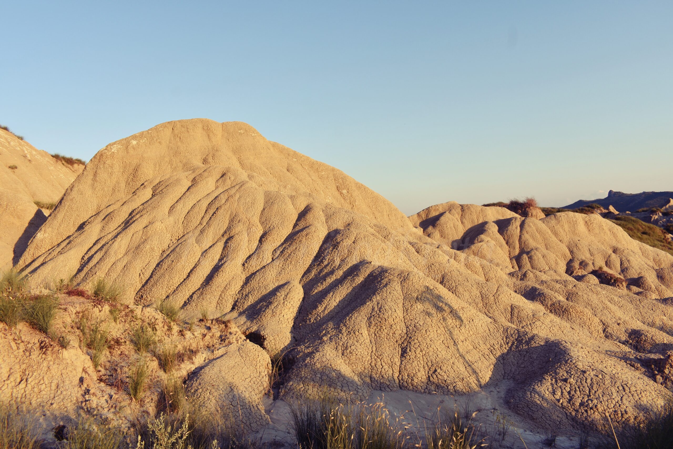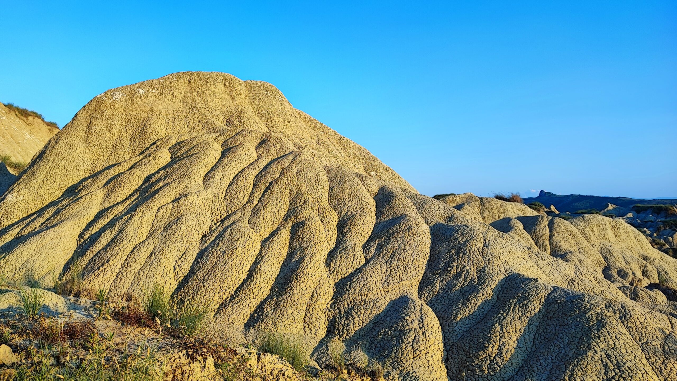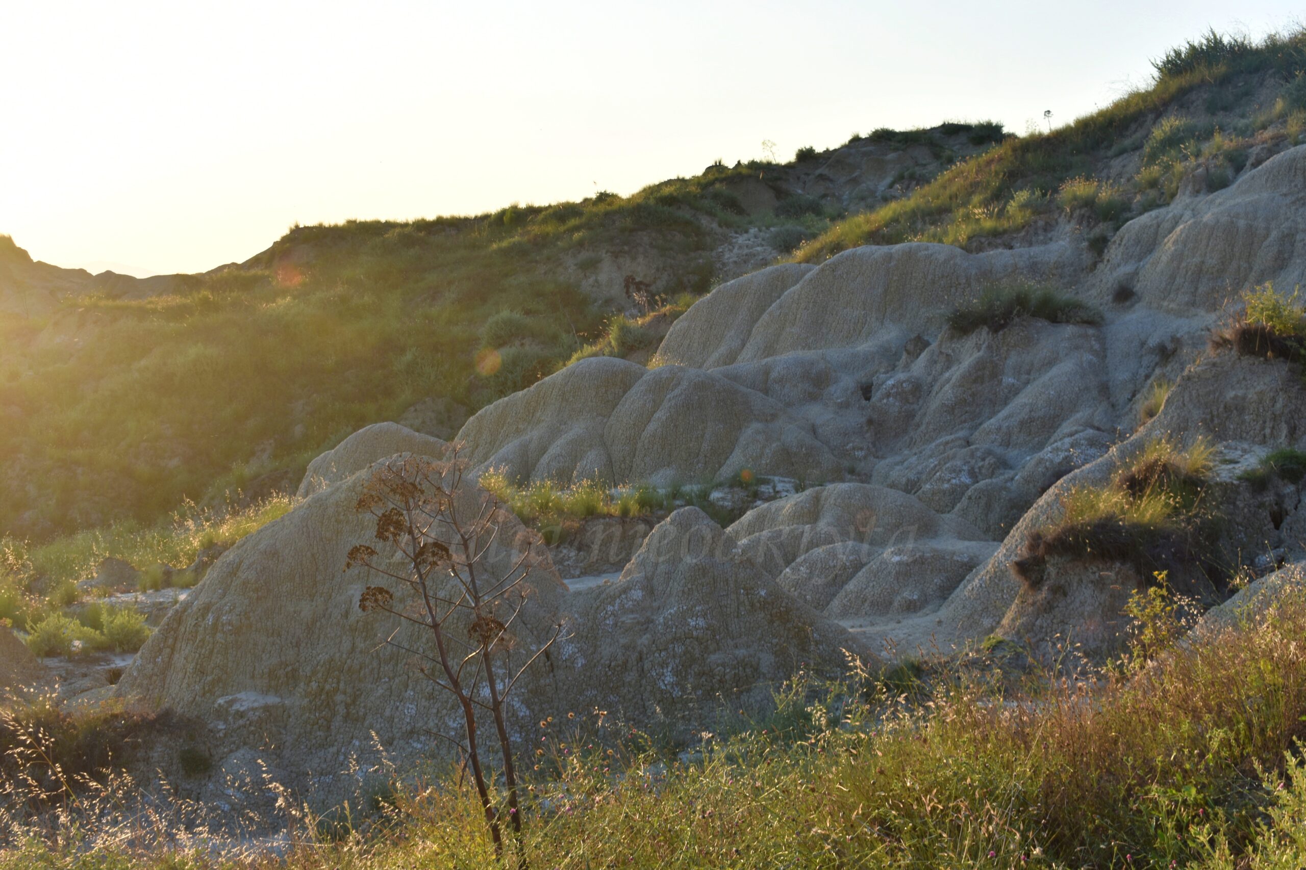 The Basilicata badlands in Italian are called Pisticci calanchi. Pisticci is a small town, and calanchi are hills of bald clay soil, a dozen or so meters high. Bald – because they rarely have anything growing on them. There are plants there, but only in the lower parts of the hills. And here and there they stick out of holes. The whole clay formation is interesting because it changes more or less after each strong rain or wind. Visiting it after a few months, you can be surprised by how much this place has changed.