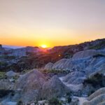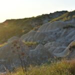I absolutely love this unusual formation. I climbed quite high up the hills, but when I looked into one deep hole, I felt not so great. The large number of holes discouraged me from climbing any further. So I slid on my butt to a lower level, wondering if something would collapse under me, then sat on one of the hills, admiring the panorama and the sunset, and waiting for the clay giants to come to life.