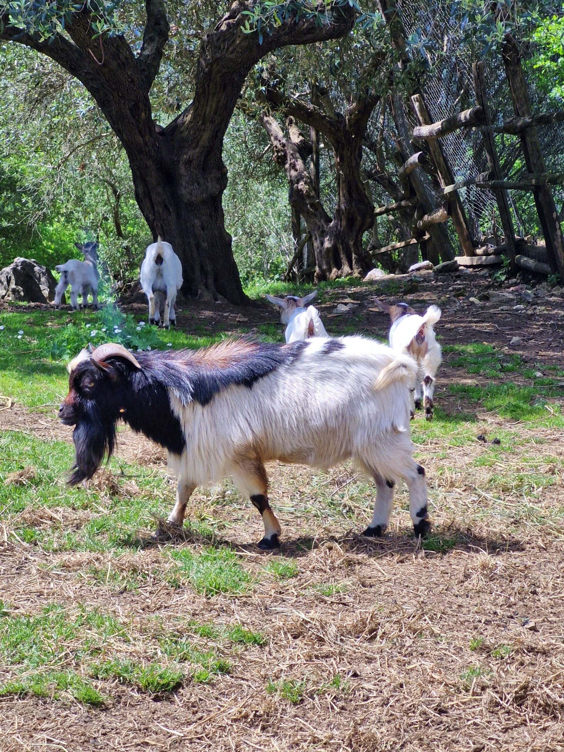 There is a small farm with chickens and goats behind a fence; as I discovered, the goats prefer rusks to leaves.