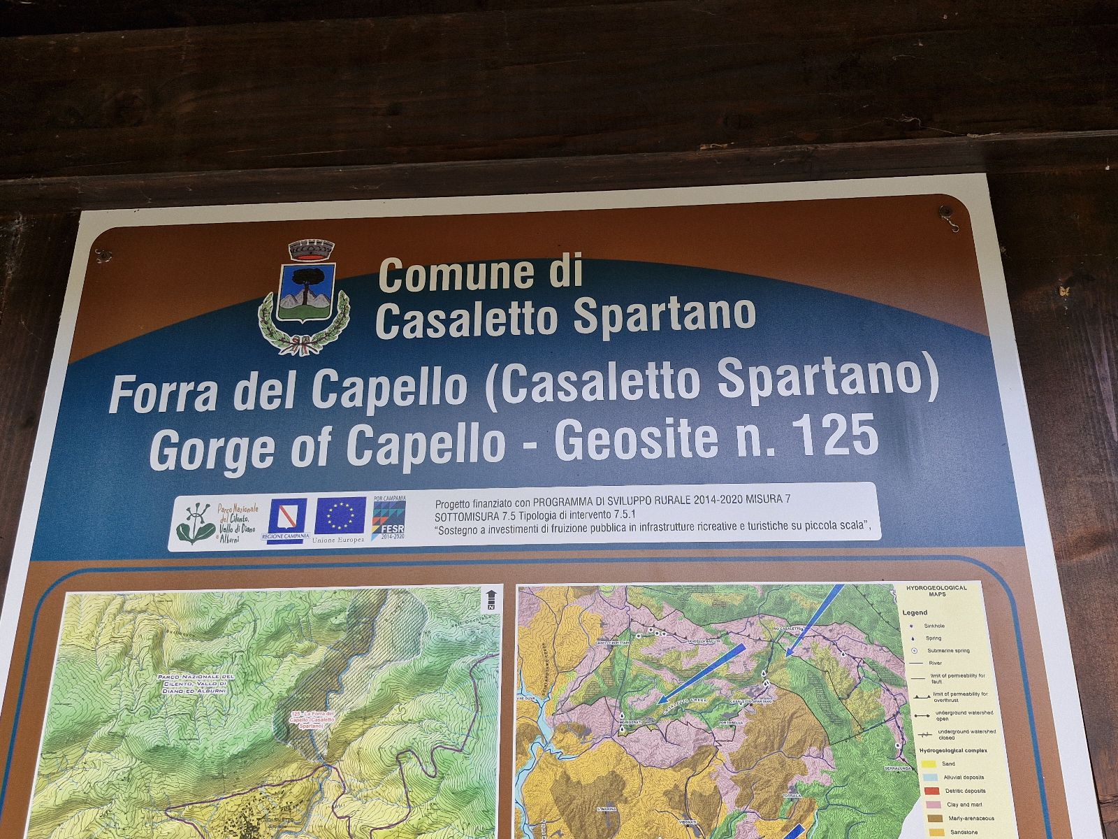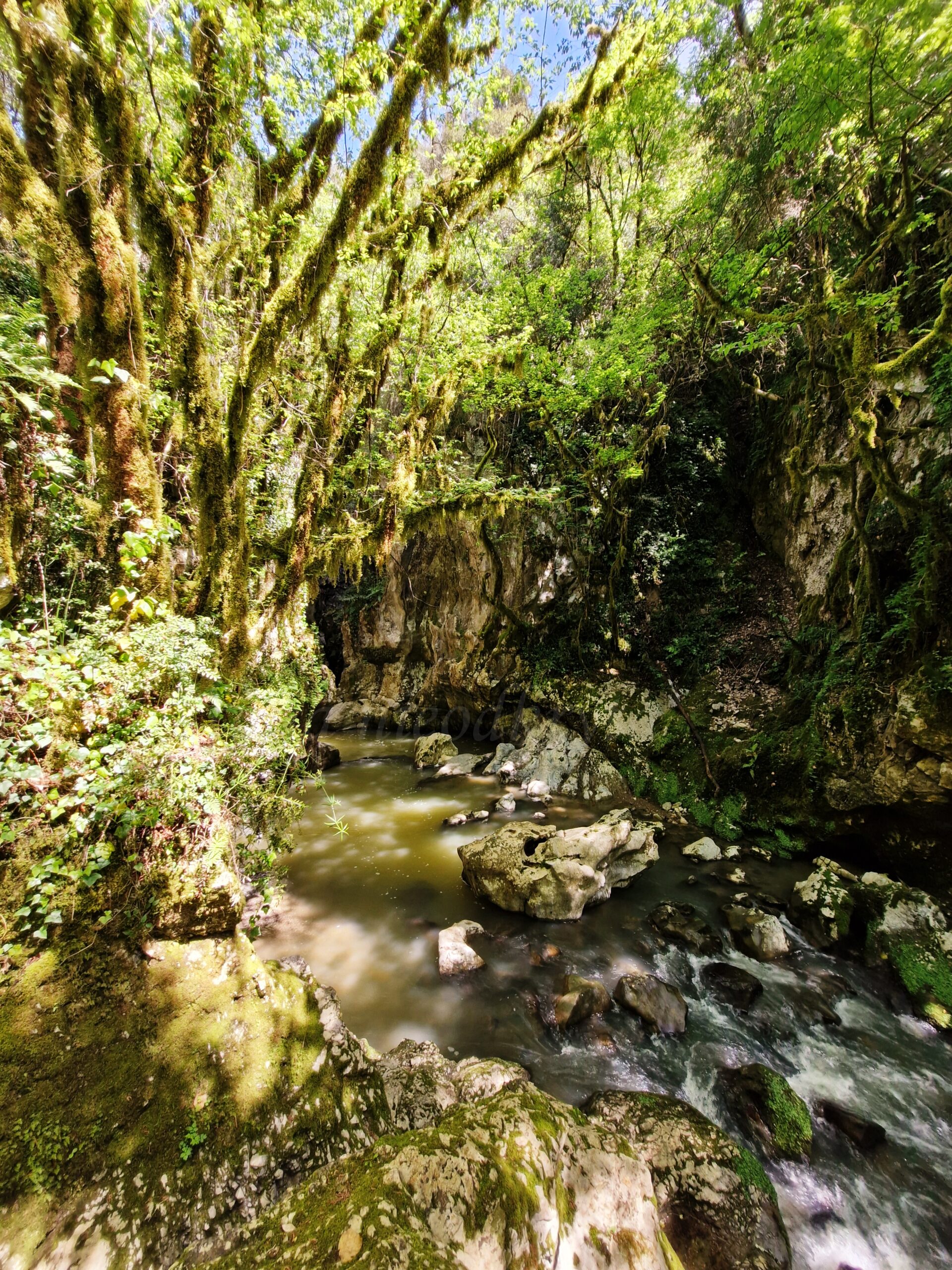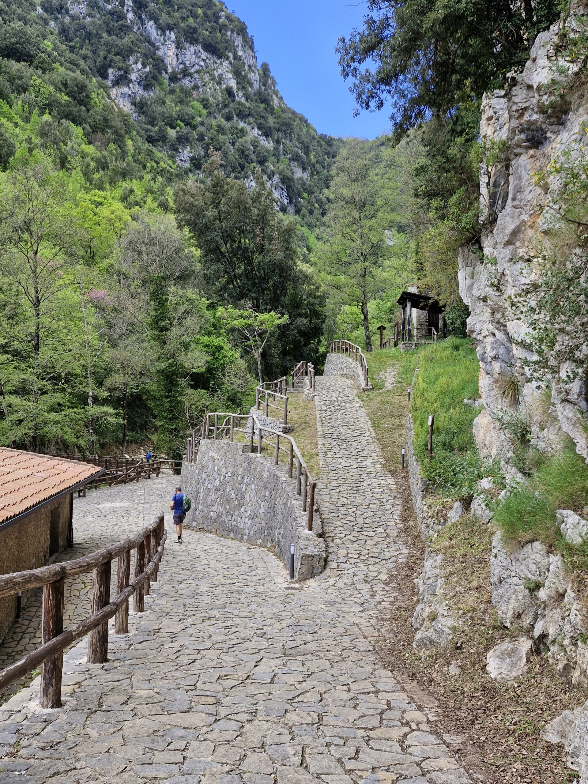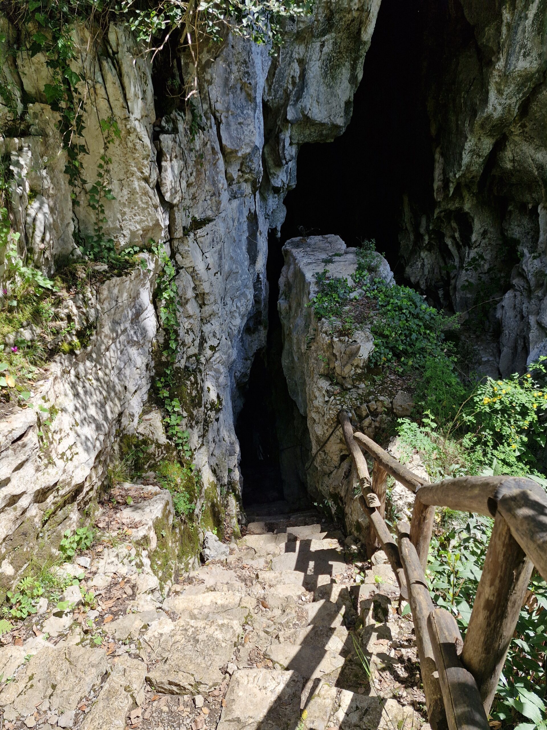 The path to the canyon is 800 m, mainly made of stone stairs leading down 130 m. At the bottom of the steps, we came across two signs indicating easy hikes in Campania. In this case, the signposts have the words: grotta / mulino. We decided to see the grotto; a guide was waiting for us (not just us, for everyone) in front of it, and after some information about the cave, we entered it: first by stone steps, then by wooden bridges connecting the high walls of the crevice. Under our feet, we had a several-hundred-foot crevice through which the Bussento flows. I can imagine how impressive this work of nature must look when the water level is high.