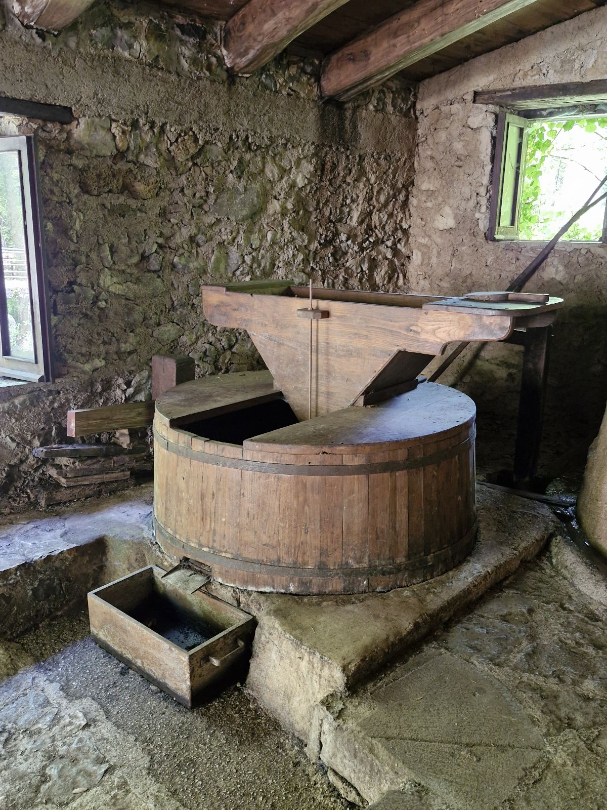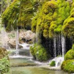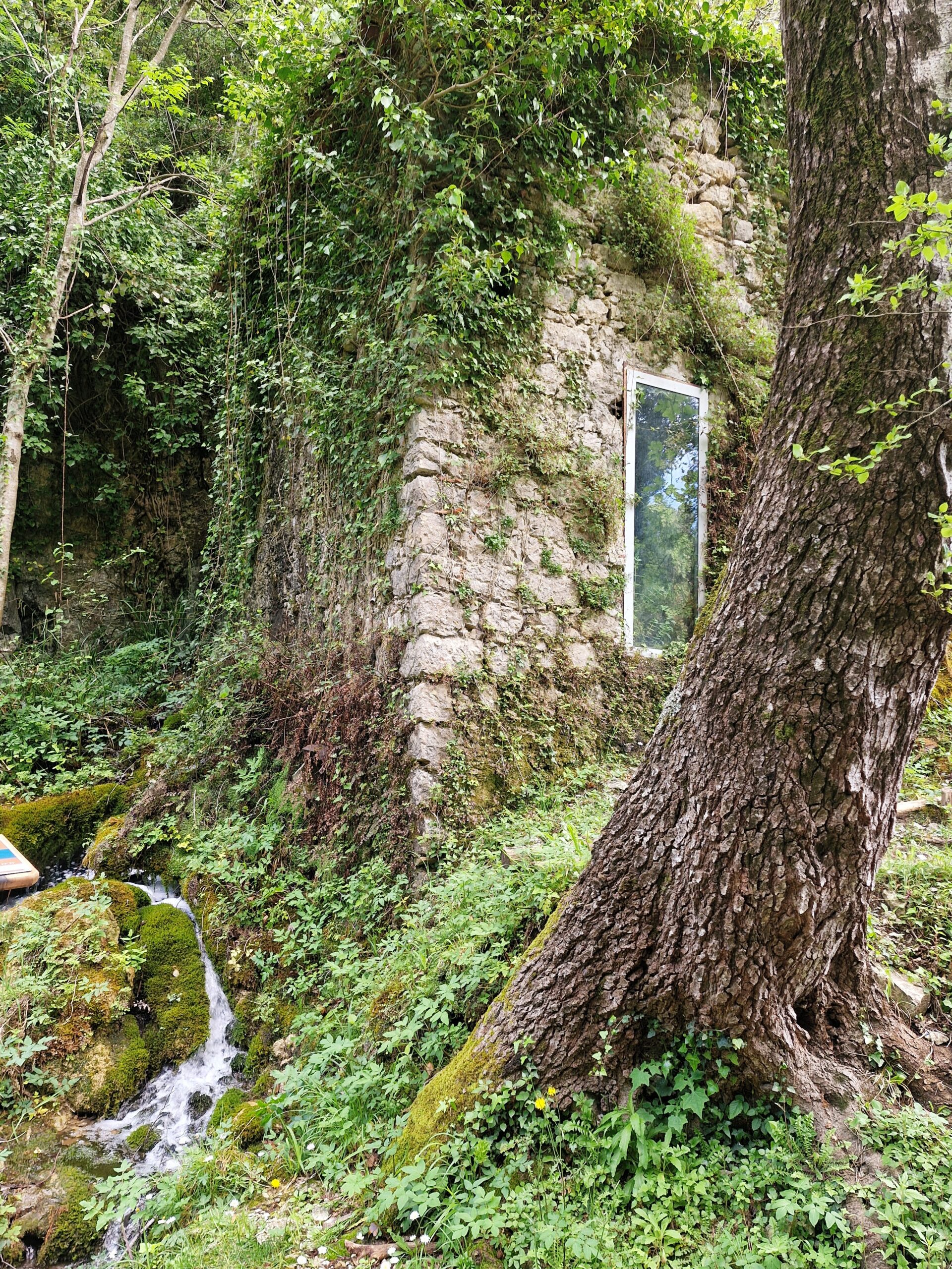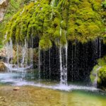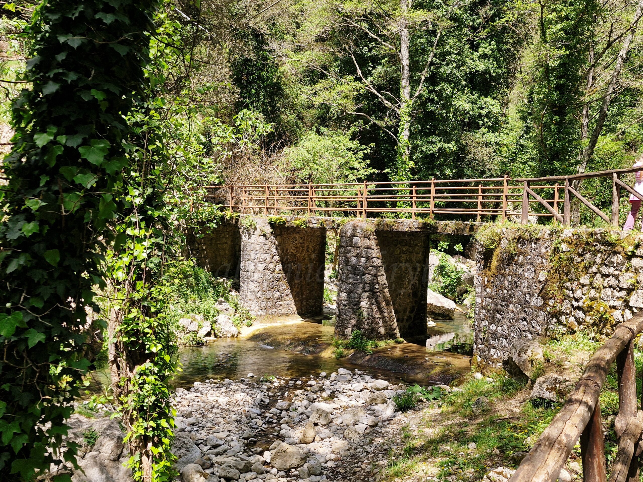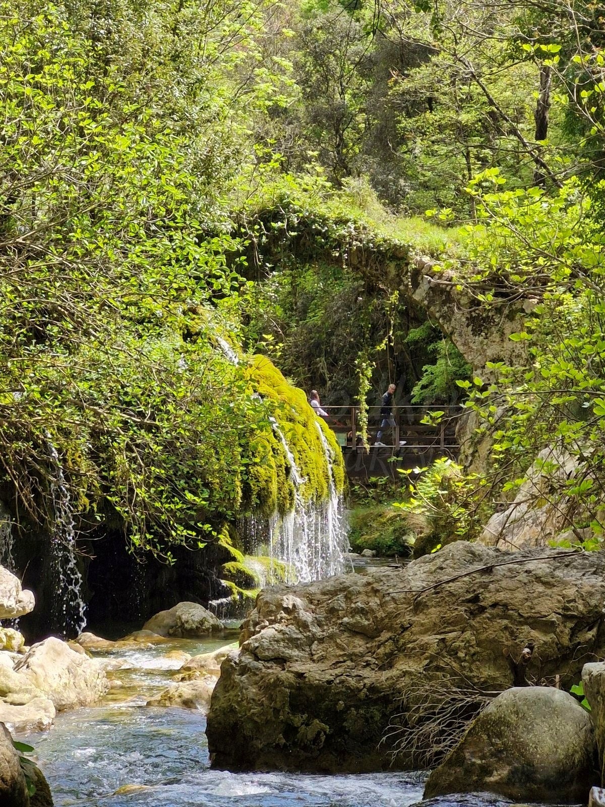 After entering, we went down and, after passing the wooden house on the left, we went down a little further to the wooden bridge and saw the place where, according to legend, Venus committed the murder of the shepherd. Indeed, the view from the bridge is magical: narrow streams of water flow down from the green growth. An old stone bridge dominates it. The impression is even more fairy-tale-like after standing on the bank, right opposite the Hair of Venus. From there, you can see how the water flows through the moss and lichens, giving the plants a beautiful green color. It looks a bit like the plants are hiding under a veil.