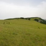 After passing through a shady forest, we came out onto vast plateaus. There were no trees, and therefore no shade, and the road led uphill.