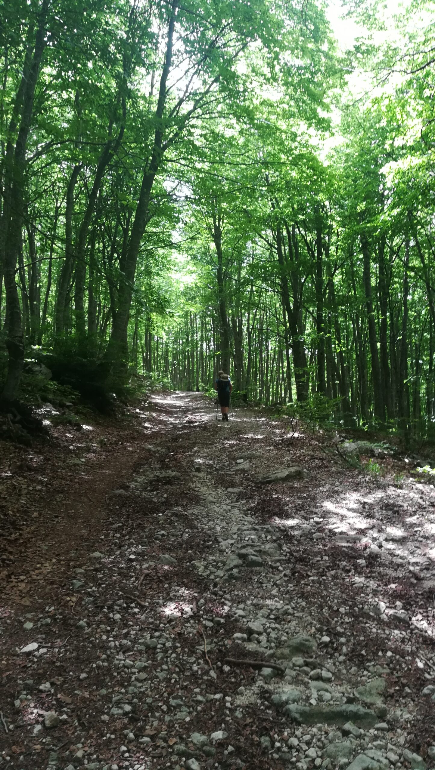 At the edge of the forest was a fountain. We filled two empty plastic bottles with water, which we didn’t throw away. Thankfully, the next fountain is almost a two-hour walk away.