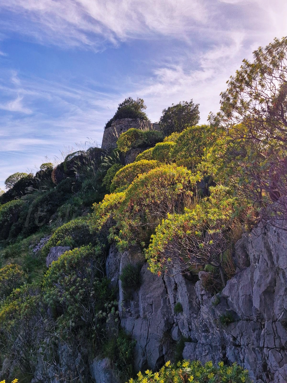 After reaching the broken fountain, you can turn around or continue walking. But the path changes: it is much narrower, more rocky, and not as comfortable (it’s good to have hikking shoes), but with great views of the coastline.We decided to keep going until we reached the ruins of the Capobianco Tower, one of the many built by the Kingdom of Naples. We actually saw the tower by accident – we were just looking at the trees. After climbing the ruins, we were amazed by the blue sea and the beautiful panorama.