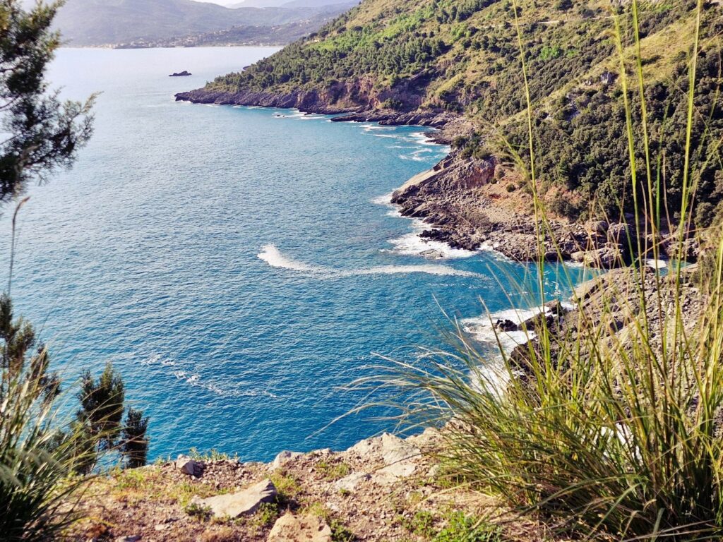 The path of the dead donkeys starts from the stairs right at the entrance to the port of Sapri, where you can also park your car. At the beginning, the route is a wide, trampled road, so you can walk in normal shoes. Once you reach the road, continue straight ahead; the next part is similar – easy.