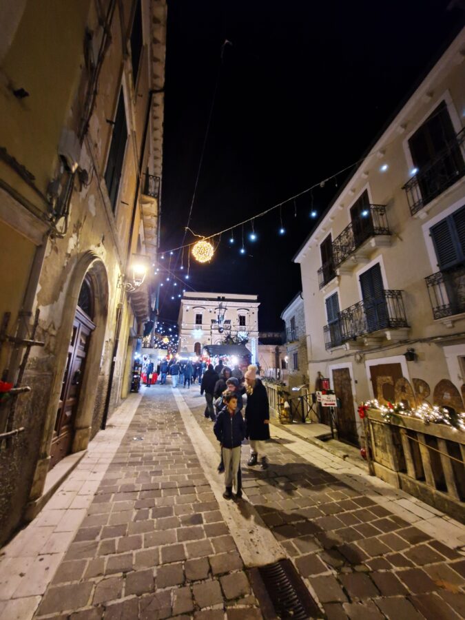 Not really, as it led us to a tiny place with a very similar name. We stopped the only local, asking where the Christmas Market was. He looked at us weirdly and said, “In Caramanico Terme. But if you got here, walk around and see our cute place.” So we did it. Walking from the parking to the end of the village and back took us maybe 5 minutes. So much, because we were walking slowly. It was dark, so I believe what he said – the village is cute.