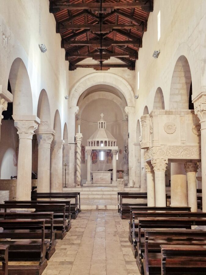 The Church of Santa Maria Assunta, which is next door, was built between the 11th and 12th centuries, and it looks a bit unreal – it’s very whitish inside. I actually thought that the renovation works had gone too far and stone columns were painted in white, but surprisingly the church is exactly as when it was built.