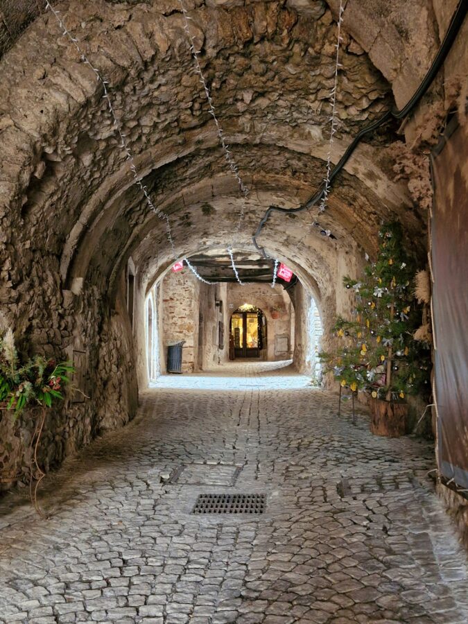 Santo Stefano is full of B&Bs, cafes, restaurants, and shops with locally produced honey and jam or salamis. We had a plate of cheese, cold cuts, and wine in one of the shops hidden under the dark passage.