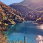 Lake San Domenico in Abruzzo with crystal-blue water, rocky gorge and hydroelectric dam during Off-Season Travel in Abruzzo Abruzja zimą