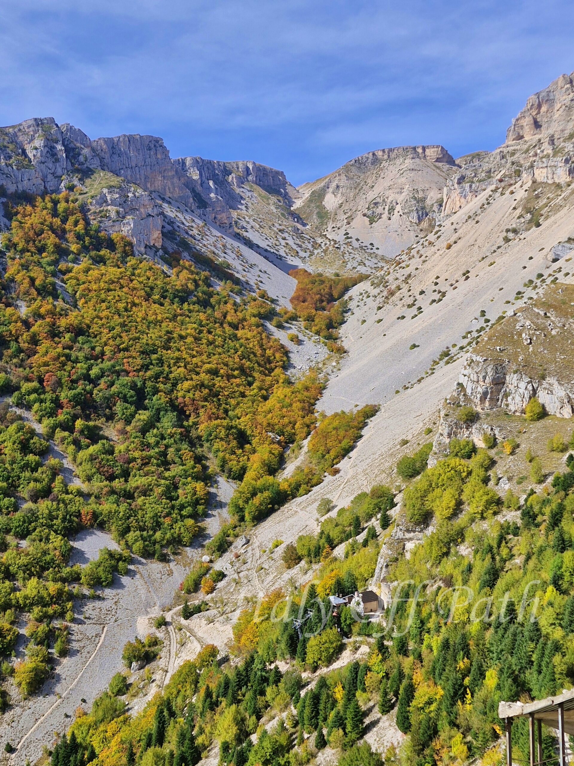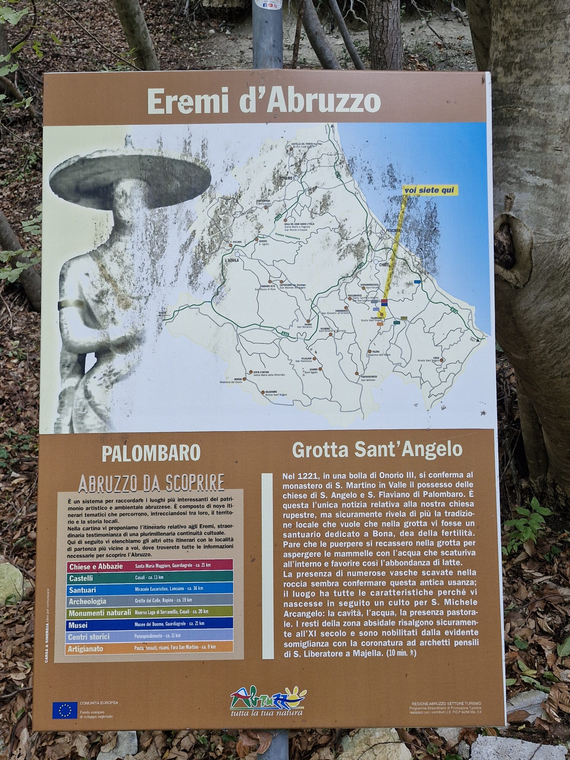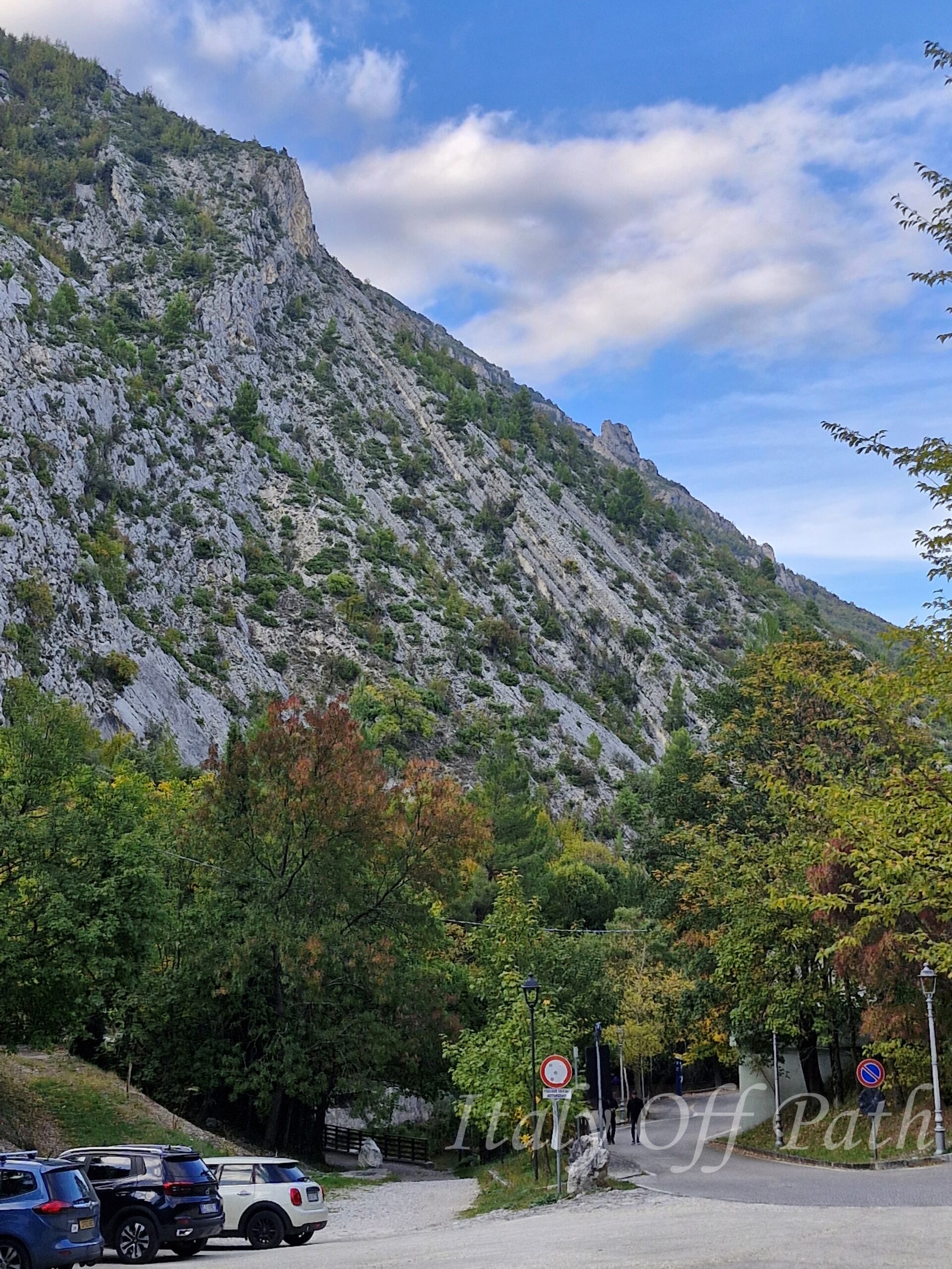 Quite a lot has changed since my first visit to Fara San Martino. Parking was originally free, but now you have to pay, although it’s also much bigger. Years ago, there was a smiling road sign, i.e., a normal sign with eyes and a smile painted on it, standing in front of the entrance to the gorge, welcoming visitors. Unfortunately, it has been replaced by a normal sign. The abbey, or rather the ruins, haven’t changed at all, nor have the surrounding mountains.