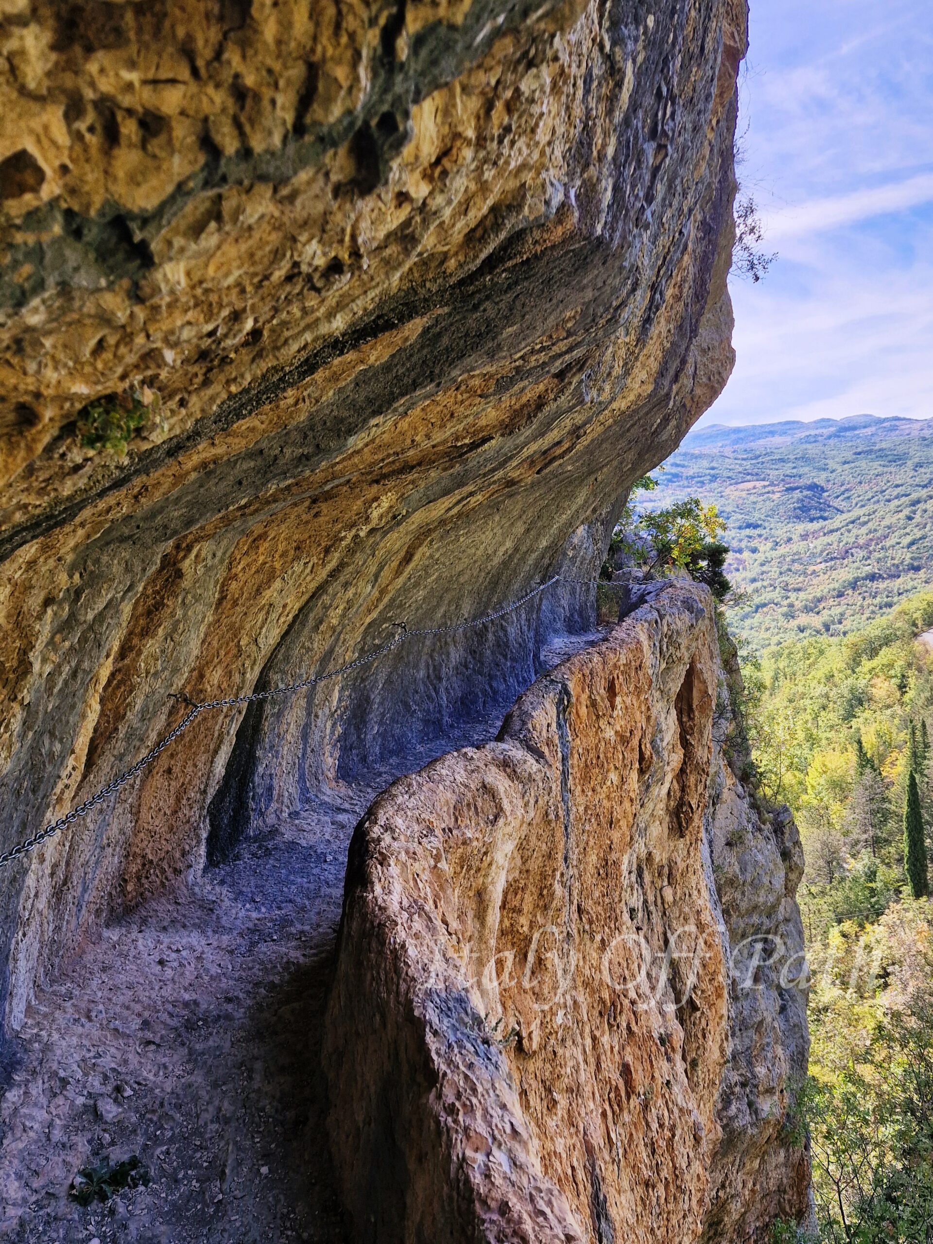 Mauro did it, wriggling here and there, which annoyed me, as I was a bit panicking. If, like me, you don’t trust such hanging things in Italy, there’s also a trail leading to the cave, which takes about two hours.
