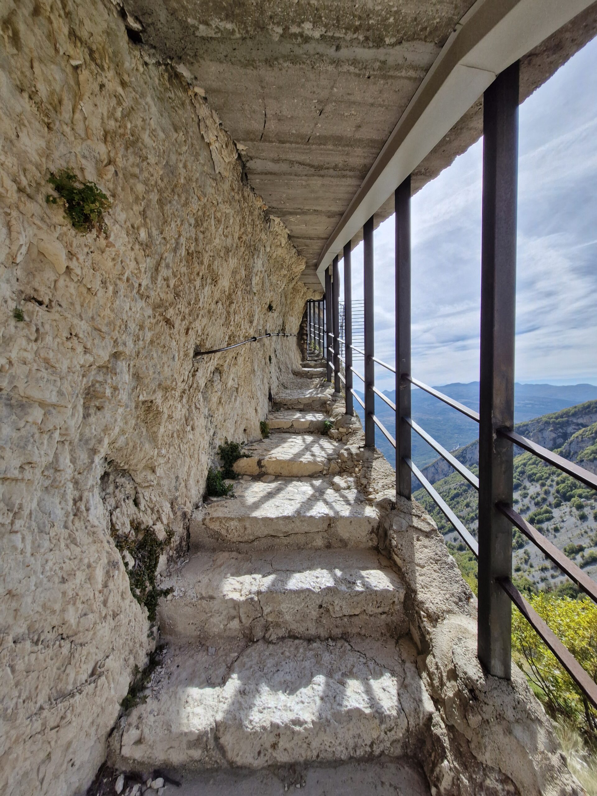 On our second day, we planned to visit the Grotta Del Cavallone, the highest cave in Europe. Since guided tours run hourly, we had some time, so we popped into the Logetta Sacrario. Climbing up, we reached the loggeta, a path carved into the rock used by soldiers during World War II. Again, I wouldn’t have gone there specifically to see the loggeta, but because it was on the way, so that’s fine.