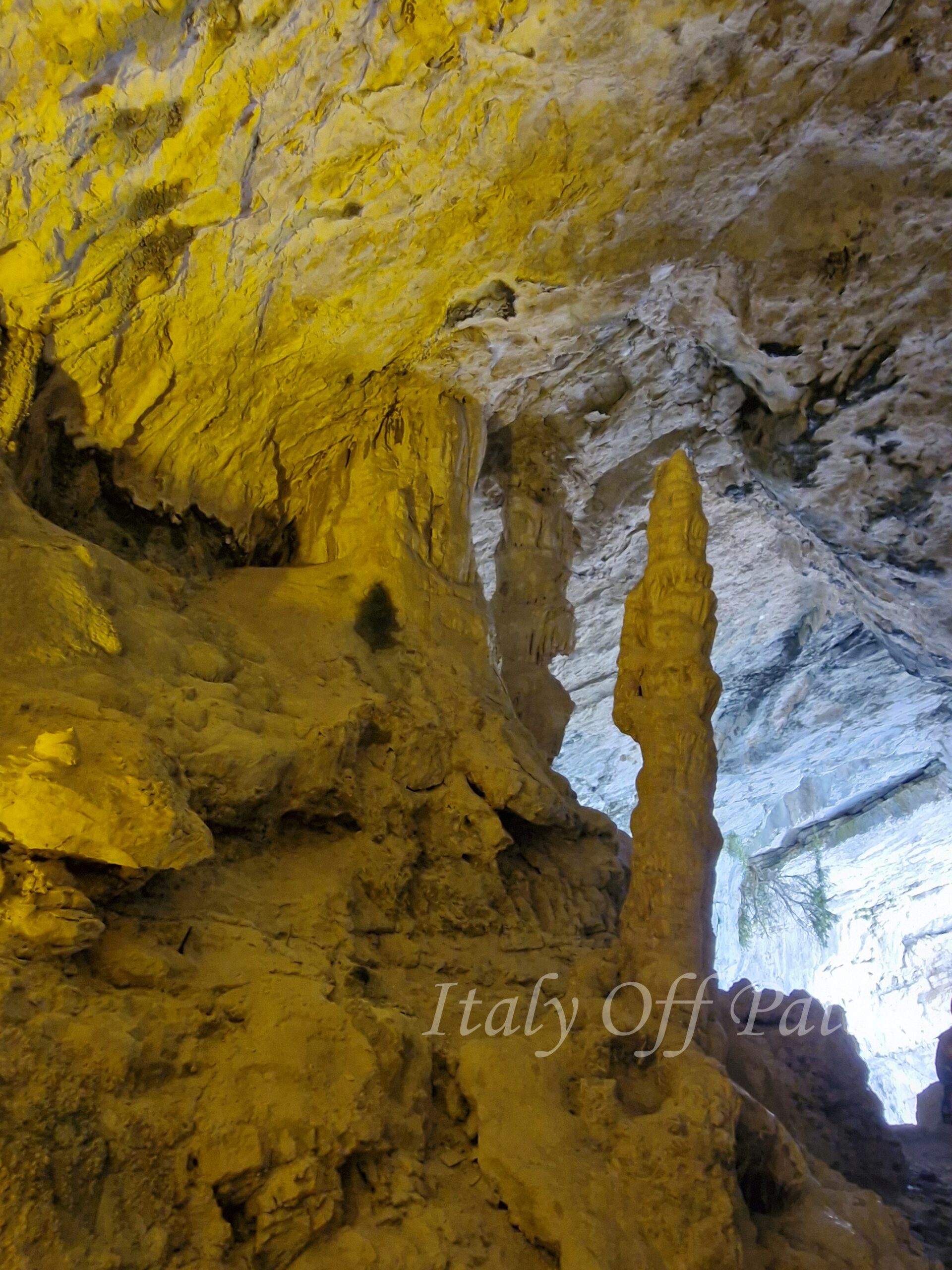 The cave is enormous and, like all caves, full of stalagmites and stalactites in sometimes weird shapes. You can expect that places like that would be quiet… but no way, Italians can’t be silent, it’s simply against their nature. So the cave was filled with whistles, whispers, chatter, and other sounds produced by them. And the guide’s booming voice. According to him, during World War II, people hid in the cave to avoid Allied bombing. They wrote memories and wishes on the wall; their notes are still visible.