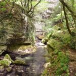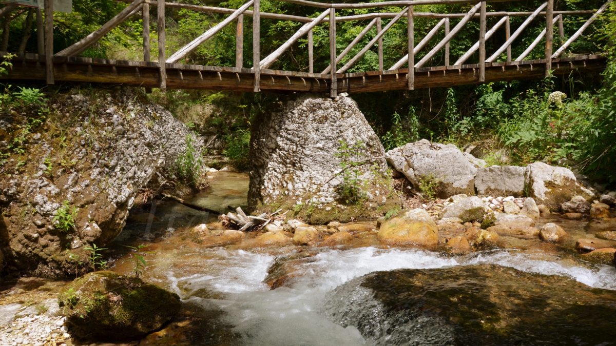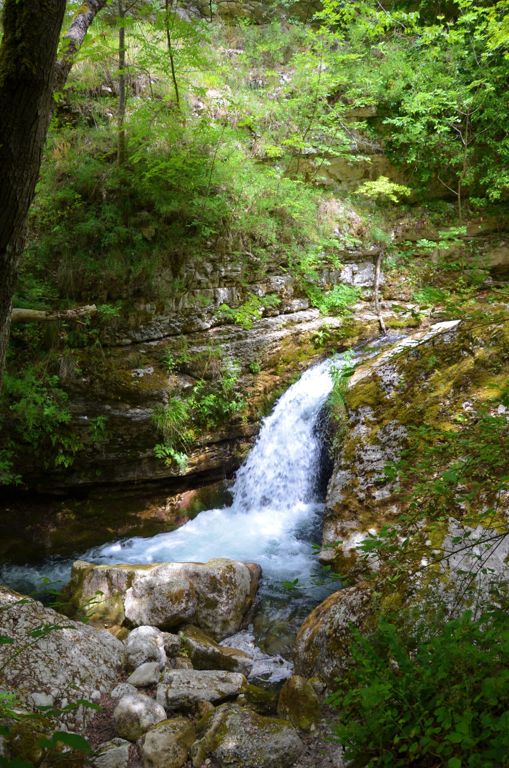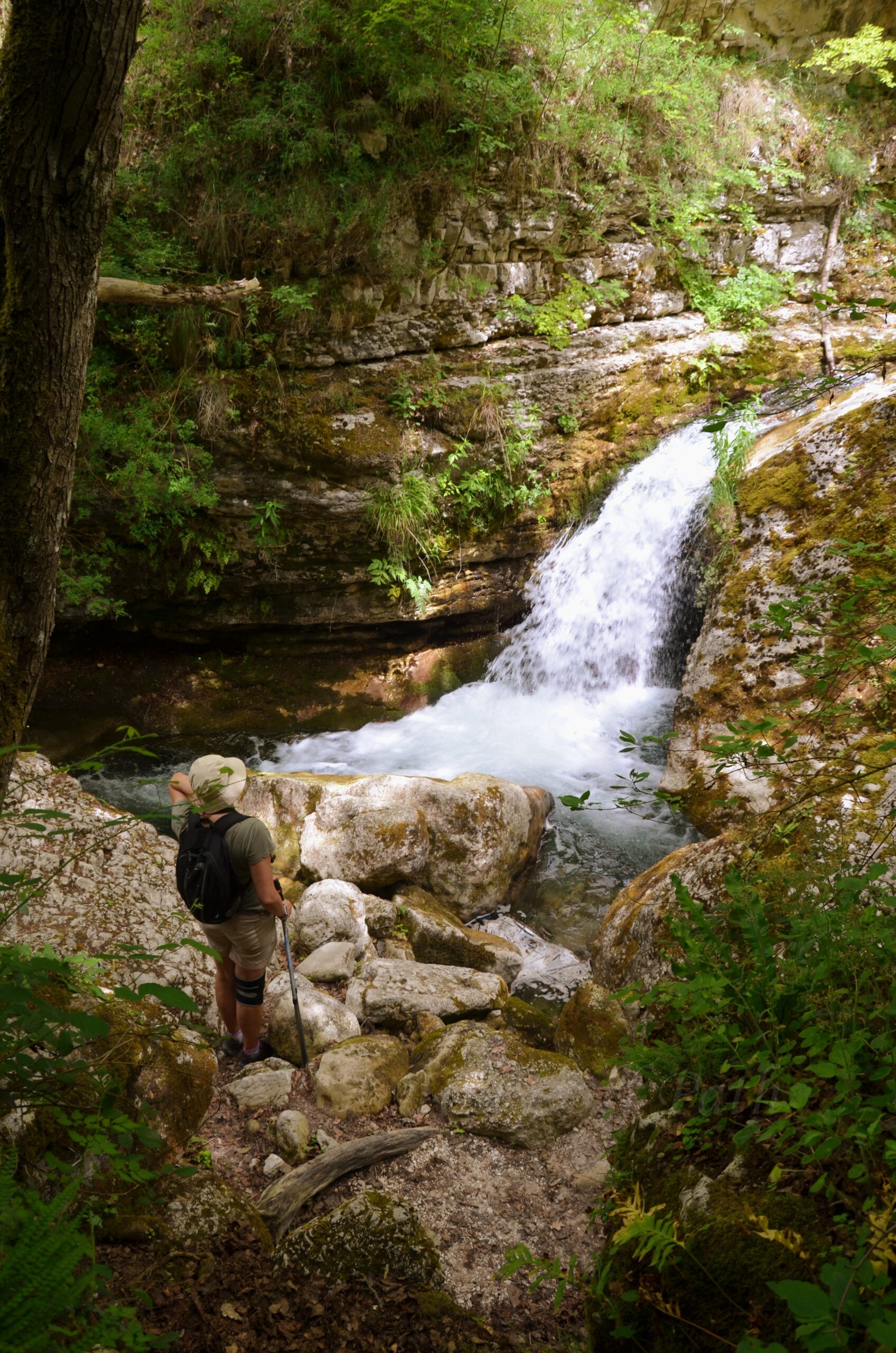 Thousands of years of water flowing between rocks have carved a canyon in the valley, which is where the S-trail leads. In my opinion, the river canyon is one of the most beautiful places in Abruzzo, although I haven’t seen everything in the region yet. If I had a better knowledge of flora, I would certainly have enjoyed trying to distinguish the numerous and varied species of plants that grow there.