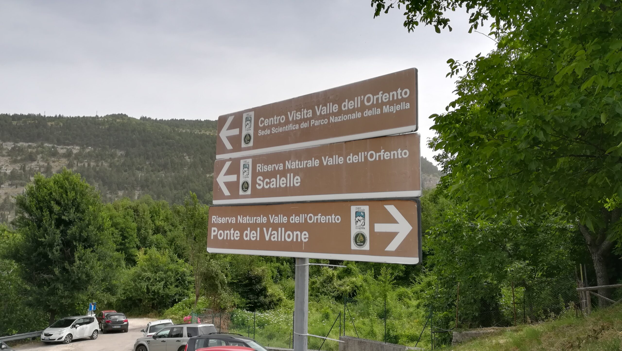 We picked out the Ponte Del’Vallone and Valle Del’ Orfento paths.The trail begins near the Caramanico tourist center in La Valle dell’Orfento (I’ve written more about it here ). We registered at the center, where I asked 100 questions about bears, making sure we won’t encounter one. Just next to the centre, there are two trails to choose from: left to Sentiero Delle Scallele (about 20 min), or right to Valle Del’Orfento (Valley Orfento). The left path was definitely too short, so we went right. And it was a very good choice.