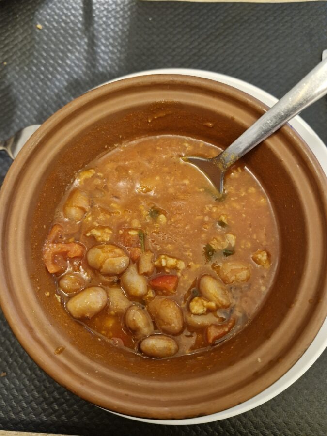 Była po 15:00; nieliczni mieszkańcy leniwie spacerując po borgo spalali kalorie, a my biegaliśmy tu i tam, próbując znaleźć otwartą restaurację. Nie jest łatwo zjeść lunch o takiej porze w miejscach takich jak Barrea. Znaleźliśmy bar z kanapkami (nie chciałam kanapek), aż w końcu zniechęceni zeszliśmy po schodach w bramie i znaleźliśmy otwartą restaurację. I jak tu nie wierzyć w cuda? Restauracja w borgo była całkiem OK; bardzo smakowała mi zupa.