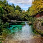 Potem przenieśliśmy się do Il Fiume Verde, która jest zaledwie kilkaset metrów dalej. Zielona rzeka jest naprawdę zielona, może bardziej turkusowa, a miejscami bardzo niebieska. Podobno właśnie te niezwykłe cechy sprawiają, że makarony De Cecco i Del Verde powstają w Fara San Marino. Nie bardzo wiem, co kolor rzeki ma do makaronu, ale najwyraźniej coś ma.