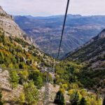 Widoki z góry są super, bo obracając się w koszu o 360 stopni możecie podziwiać panoramę Doliny Taranta. Mauro to właśnie robił, kręcąc się w kółko, co mnie, jako że nieco panikowałam, irytowało. Jeśli, tak jak ja, nie ufasz takim wiszącym rzeczom we Włoszech, to do jaskini prowadzi też szlak. Jego przejście zajmuje ok 2 h.