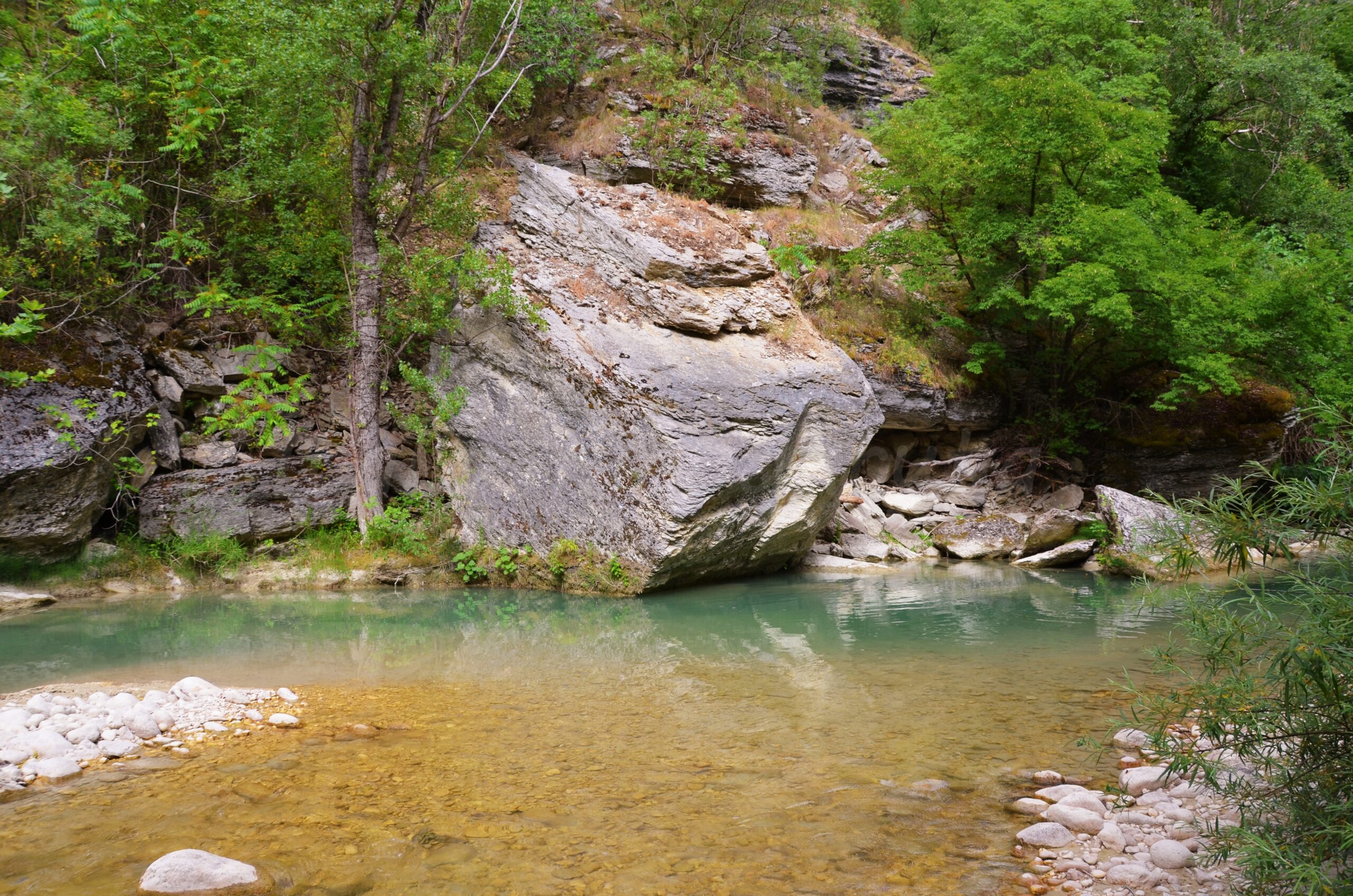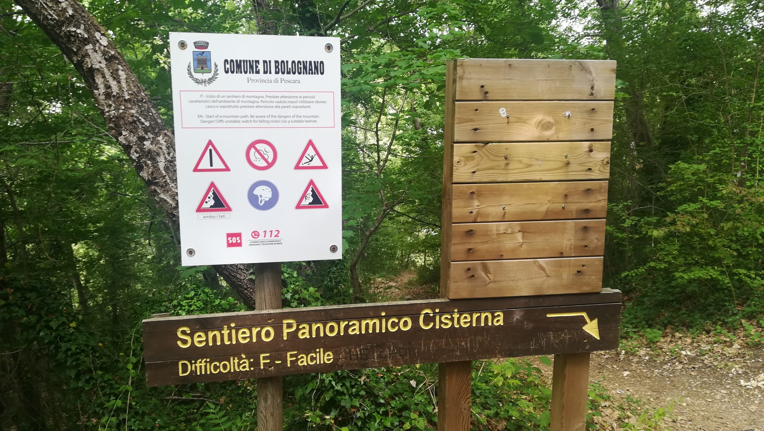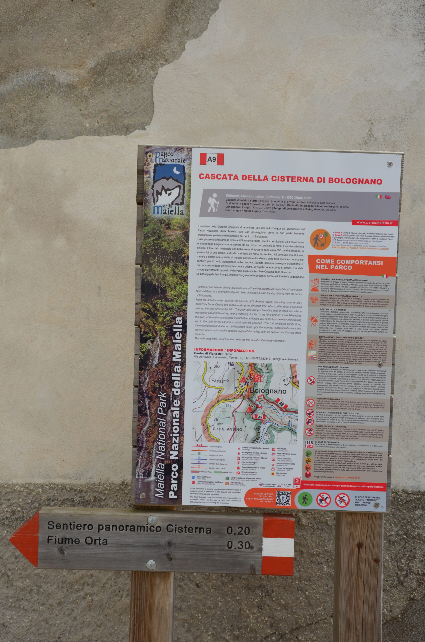Niespecjalnie skomplikowany szlak do rzeki Orta (Cisterna del Fiume Orta) i Cascata Bolognano zaczyna się w centrum Bolognano.