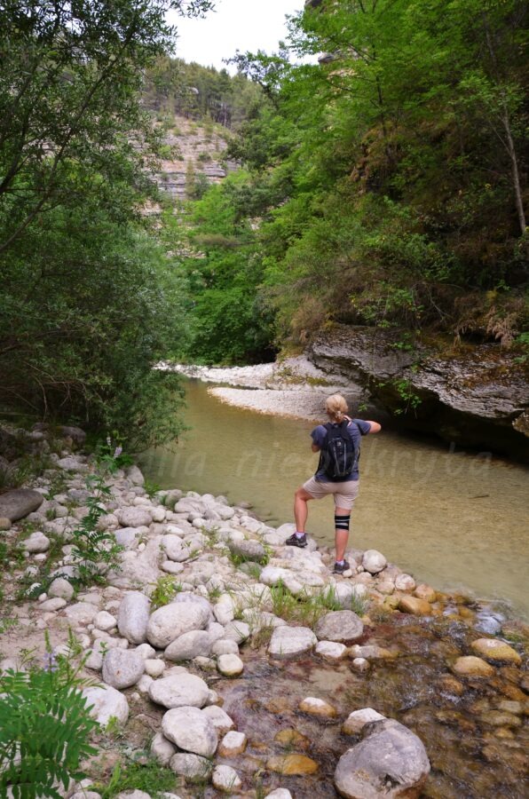 Poszliśmy więc prosto nad rzekę. Szlak technicznie rzecz biorąc nie jest trudny, ale oblepiona koszmarnie wilgotnym powietrzu marzyłam o kąpieli w zimnej górskiej wodzie.