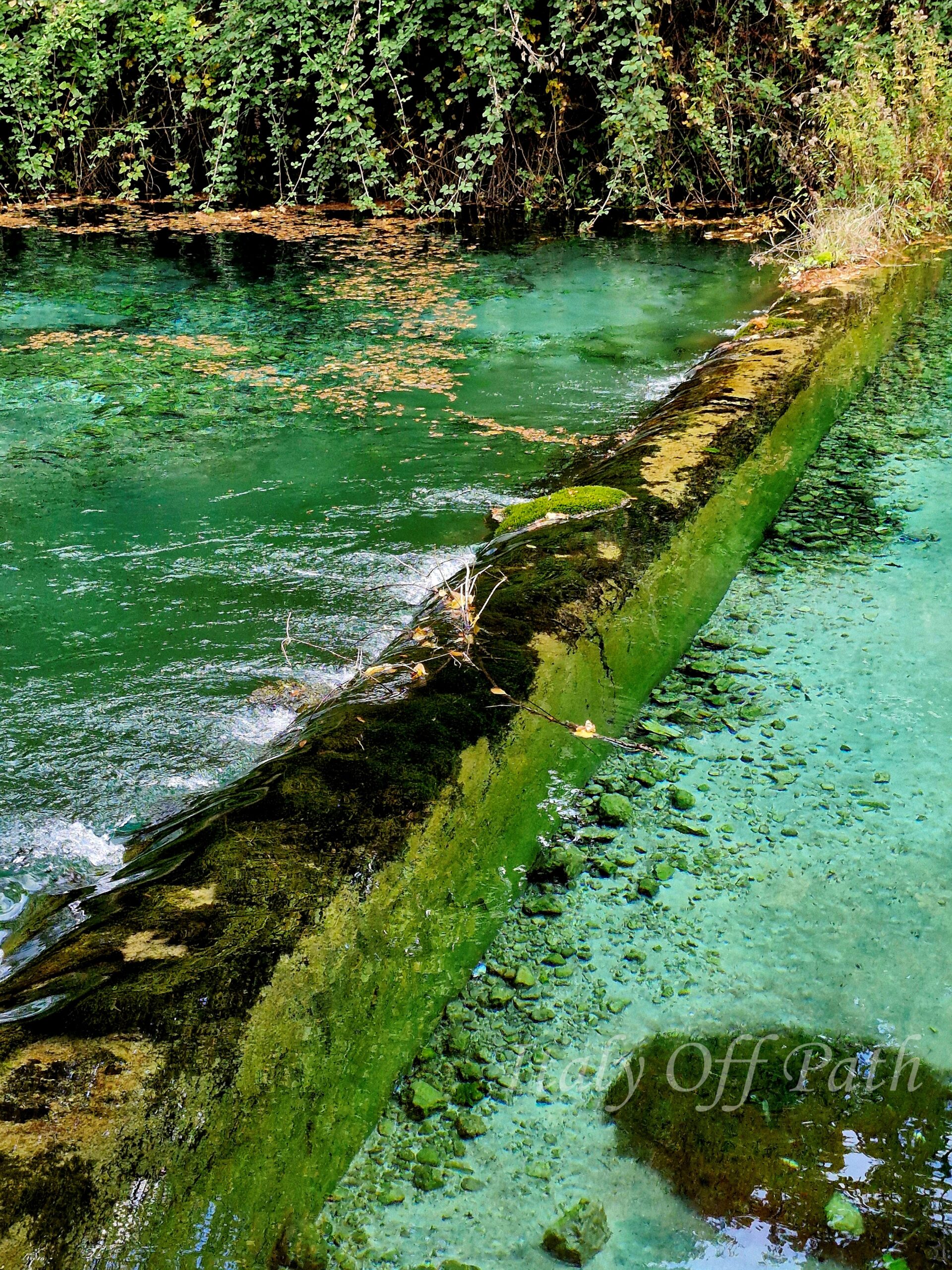 Potem przenieśliśmy się do Il Fiume Verde, która jest zaledwie kilkaset metrów dalej. Zielona rzeka jest naprawdę zielona, może bardziej turkusowa, a miejscami bardzo niebieska. Podobno właśnie te niezwykłe cechy sprawiają, że makarony De Cecco i Del Verde powstają w Fara San Marino. Nie bardzo wiem, co kolor rzeki ma do makaronu, ale najwyraźniej coś ma.
