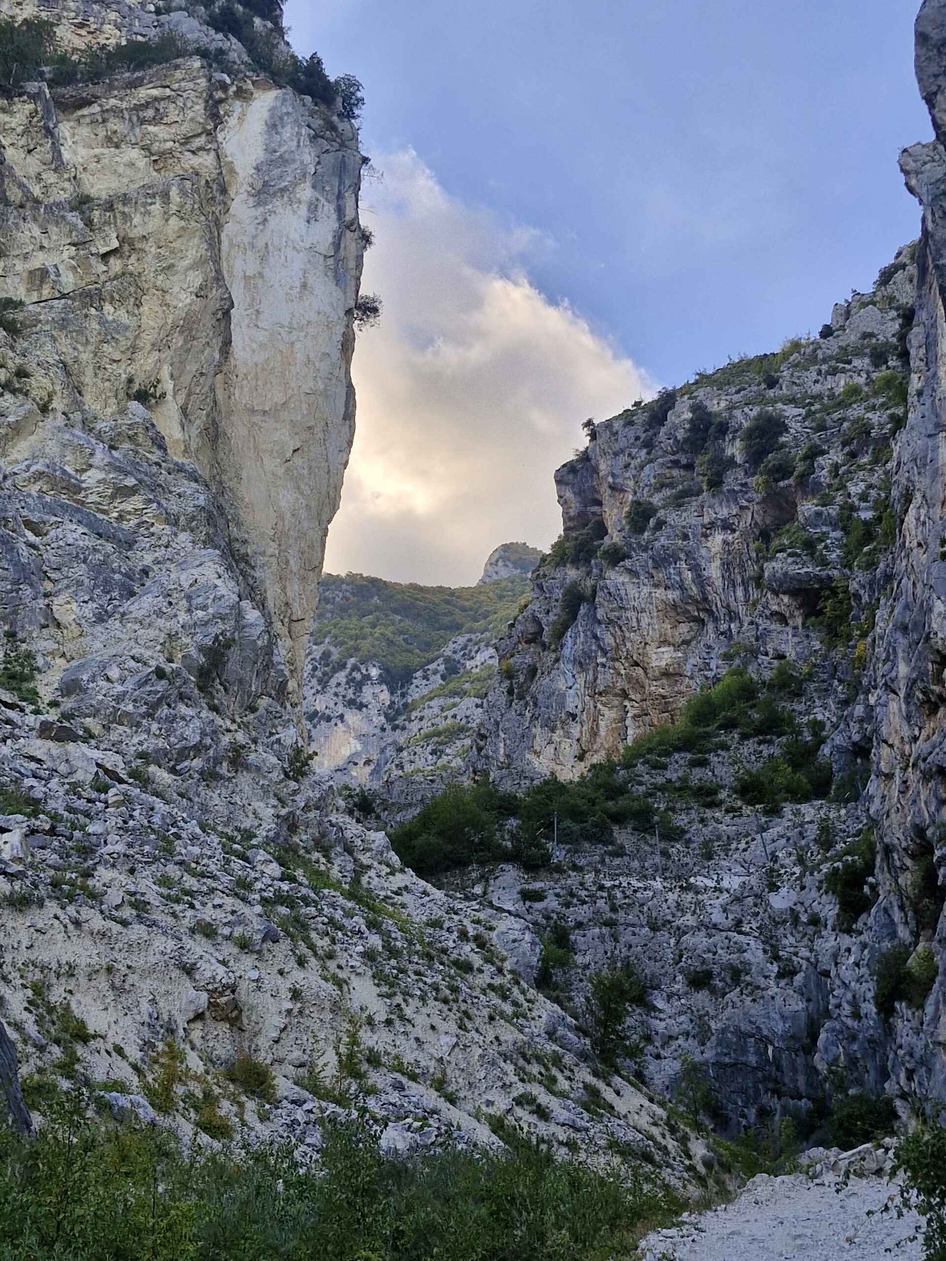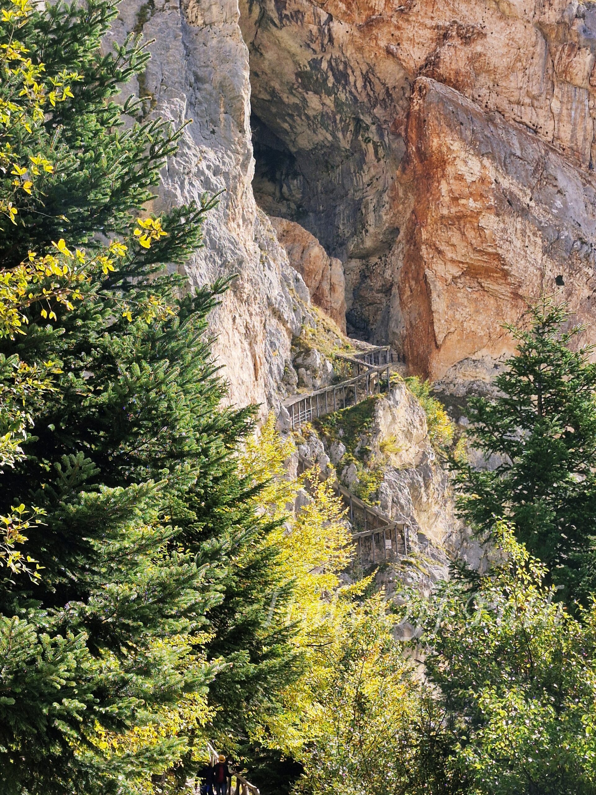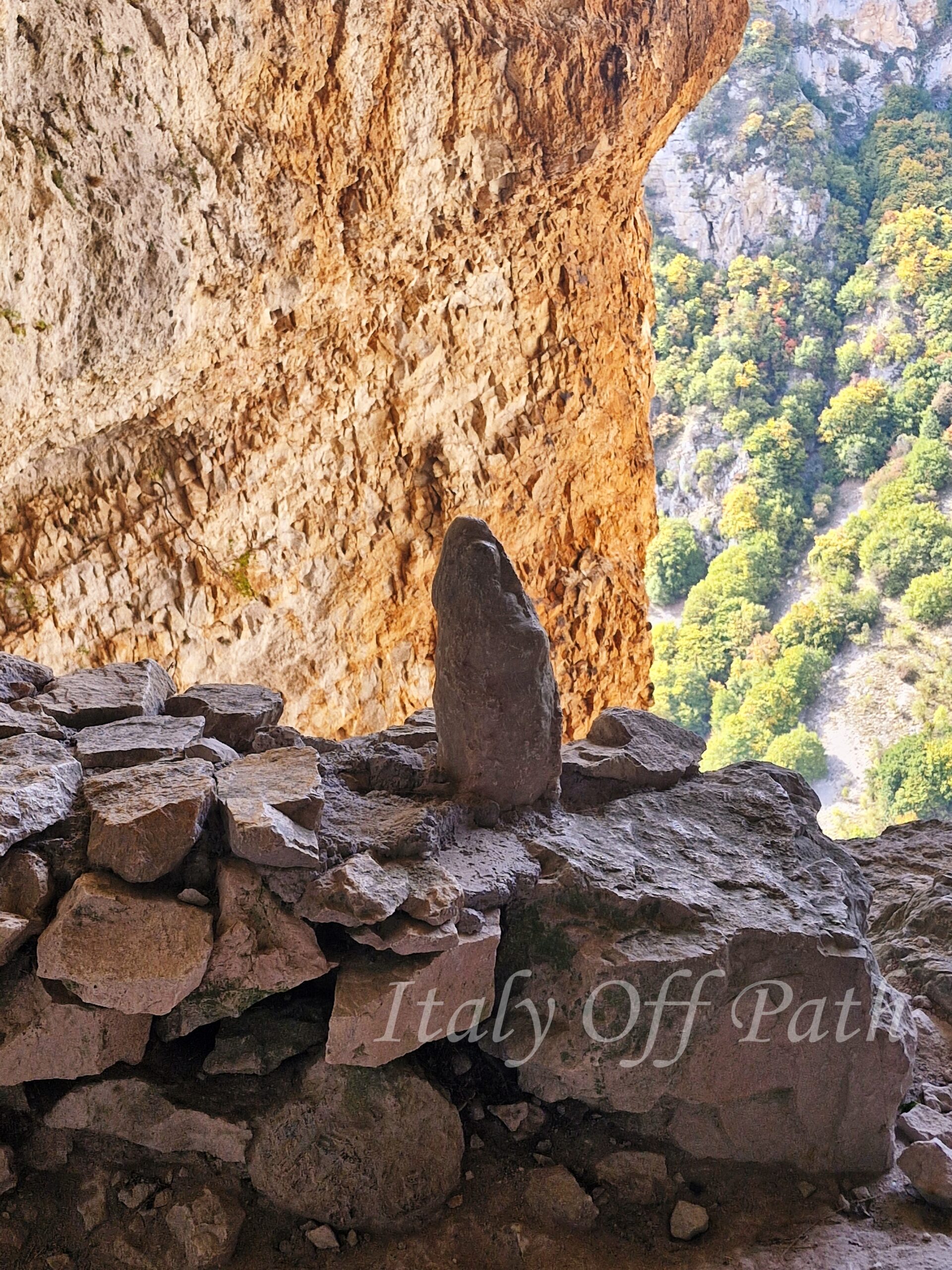 Drugiego dnia planowaliśmy odwiedzić Grotta Del Cavalone, najwyższą położoną jaskinię w Europie. Ponieważ wycieczki z przewodnikiem (wyłącznie) odbywają się co godzinę i mieliśmy trochę czasu, więc po drodze wdrapaliśmy się do Logetta Sacrario. To ścieżka wykuta w skale, z której korzystali żołnierze (również polscy) podczas II wojny światowej.