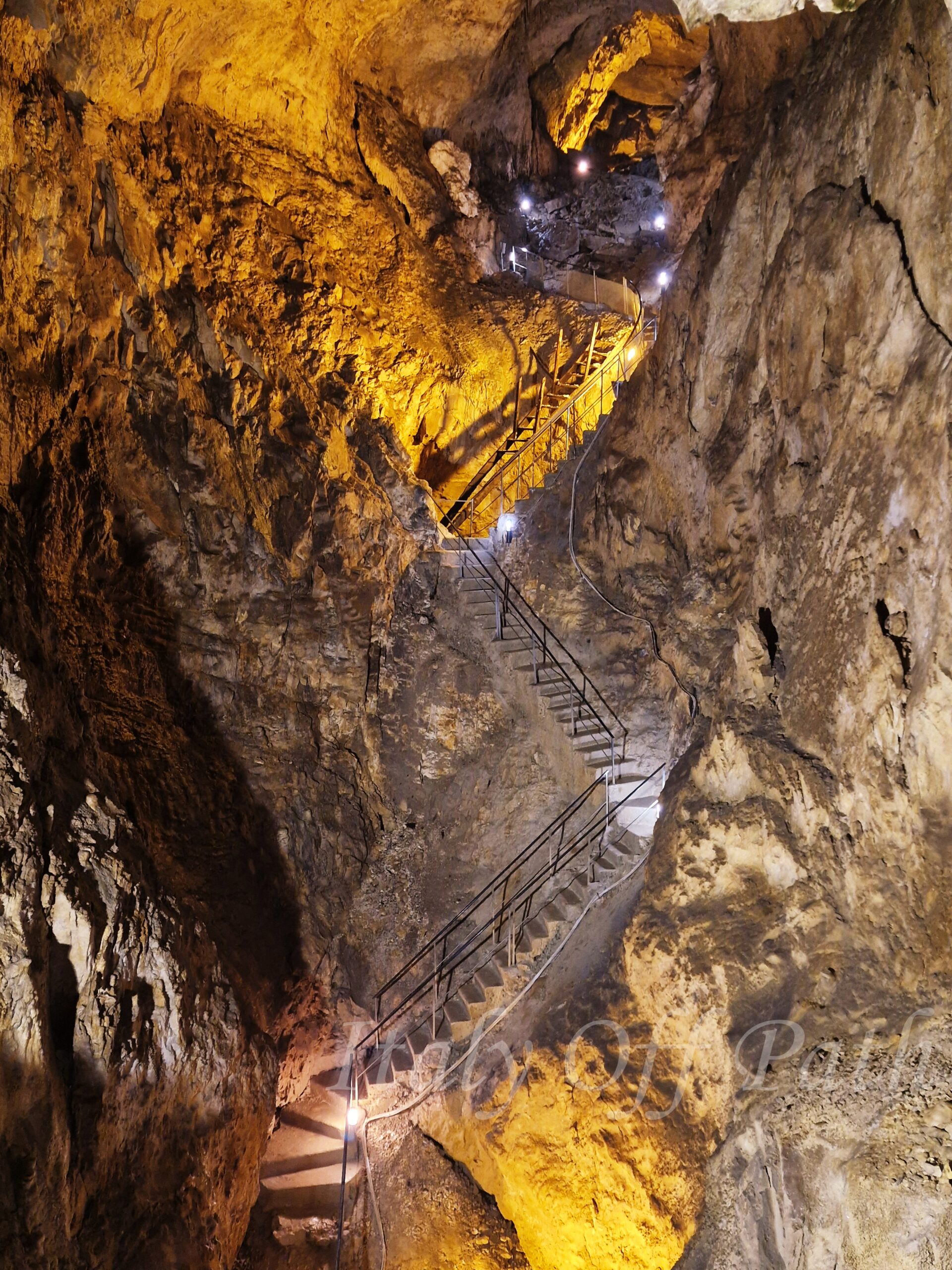 Chodnik w jaskini jest szeroki i nie ma tam jakichś szczególnie ekstremalnych miejsc, ale w niektórych punktach jest śliski – przewodnik o tym uprzedza. Ostatnim punktem zwiedzania groty jest głęboka na 27 m dziura; prowadzą do niej dość strome schody. Ten punkt zwiedzania nie jest obowiązkowy – można poczekać przy mostku na powrót grupy. A po godzinie zwiedzania pozostaje tylko wrócić na dół. Oczywiście w koszu.