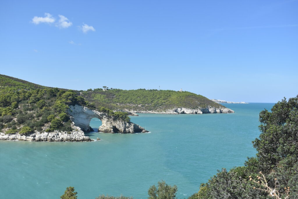 Kręta droga do Vieste prowadząca wzdłuż wybrzeża przez górzyste Gargano dostarcza super widoków. W pobliżu Vieste znajdują się 2 malownicze i chętnie fotografowane miejsca, a właściwie trzy, jeśli doliczyć jakiś czas temu dziwacznie odnowioną wieżę, z której rozciąga się piękny widok na łuk i morze.