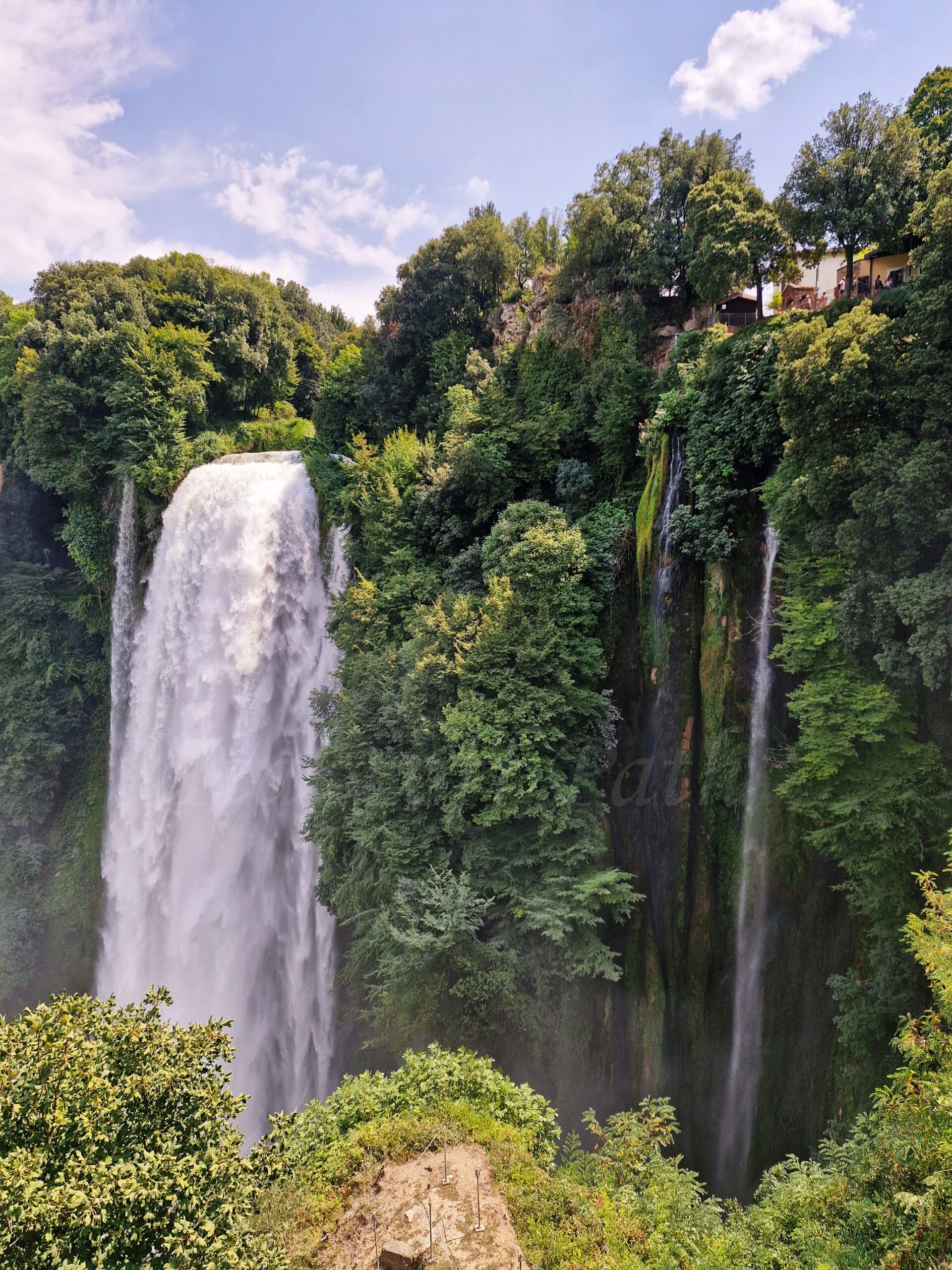 Wspomniałam, że wodospad nie jest naturalny: powstał, bo jeden rzymski konsul chciał osuszyć mokradła zasilane przez Velino i dlatego wymyślił budowę kanału. Miał on skierować stojącą wodę z klifu w pobliżu Marmore.