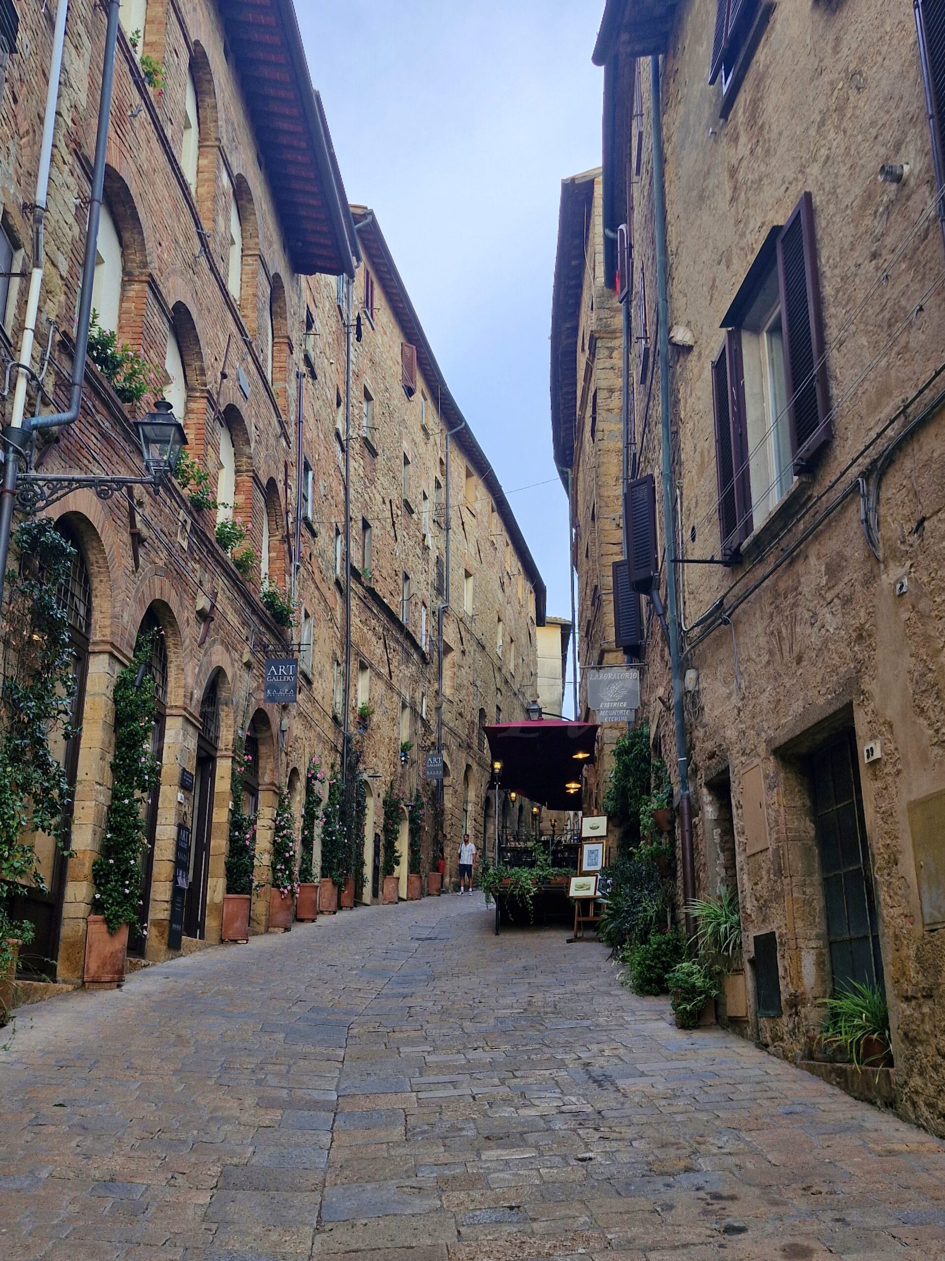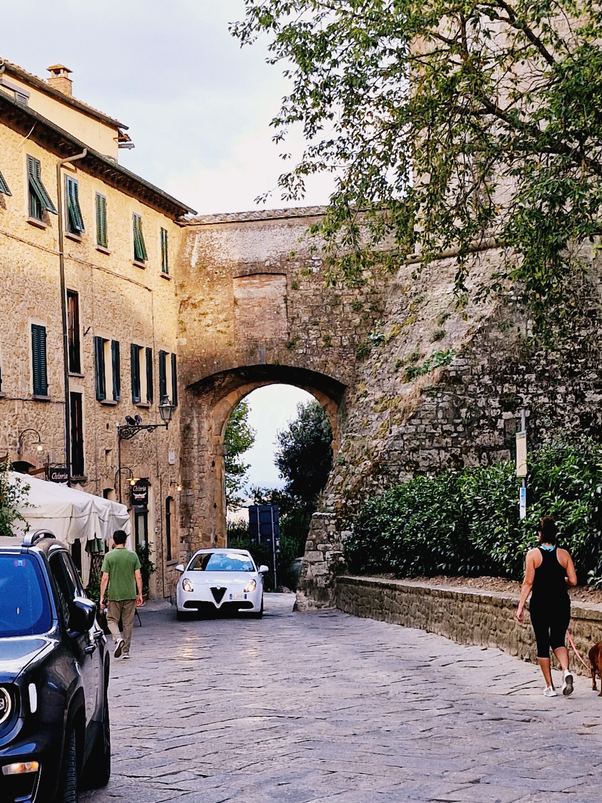 Heading towards the next place to visit, we saw walls on the way. We stopped to see what was hidden behind them. Hidden away is Colle di Val d’Elsa – a very pretty town with a long street leading from the main gate to the old town.