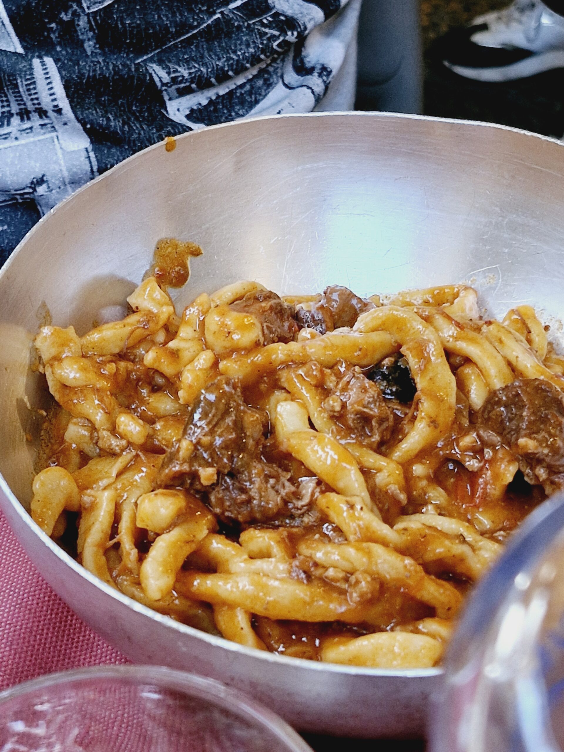 I have no reference because I haven’t eaten animals for over 25 years and I simply don’t know what good meat tastes like and whether what a trattoria serves is delicious. I didn’t like it. That doesn’t mean the food was bad, it means I don’t like meat. So I’ll quote Mauro, who says that the steak was delicious and didn’t have to be chewed, like beef. In his opinion, if you want to spend some money on a steak, a trattoria is a good place to have dinner on a weekend in Tuscany.