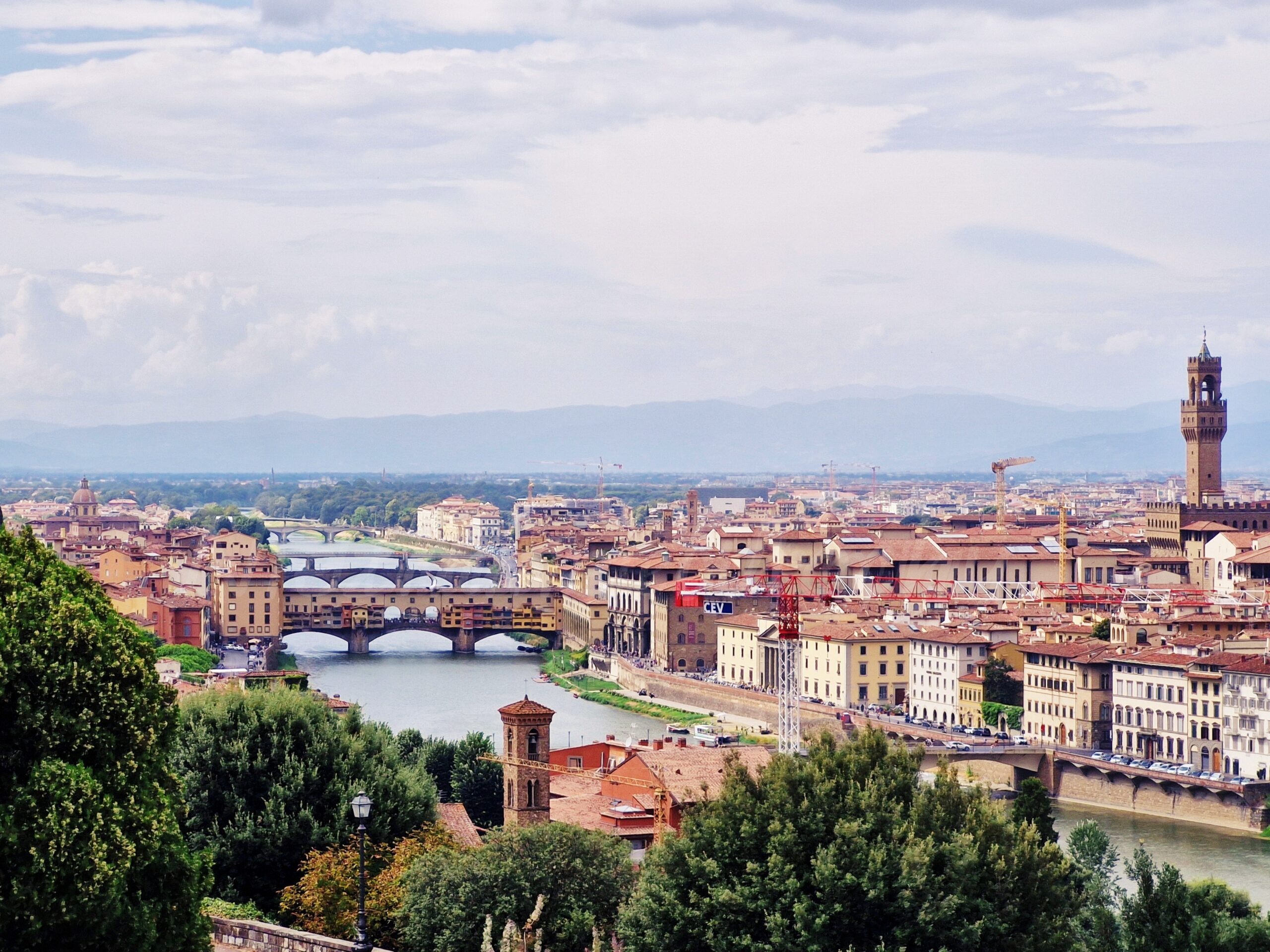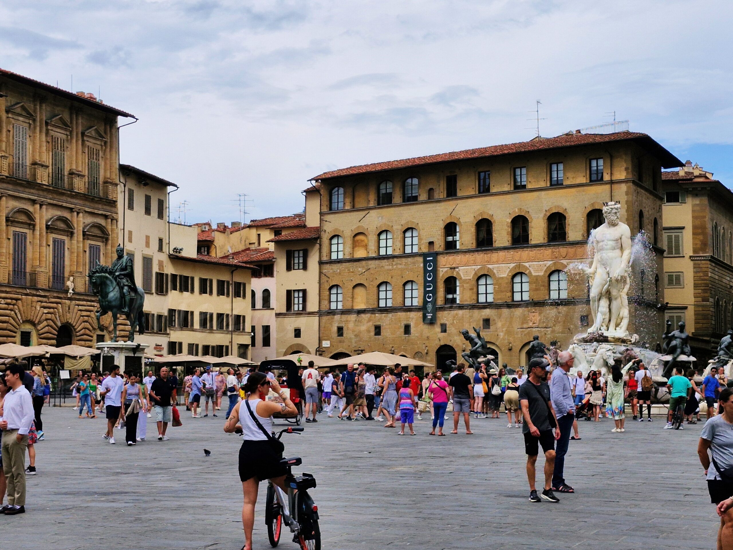 Florence is usually a must-see for a trip or a weekend in Tuscany. We didn’t plan to do it because I’d already been there, and besides, I don’t like crowds of tourists. But since the weather canceled the rafting and Florence was the only place where it wasn’t pouring that afternoon, we visited the showpiece city of Tuscany. Florence is supposedly the most stunning city in Italy. Indeed, the panorama consisting of the brick-colored roofs, the towers and domes of the churches and the river towering over them is beautiful. Florence has many wonderful buildings; I like architecture. However, in general, this city doesn’t arouse my enthusiasm, in my opinion the more snobbish and less touristy Siena is nicer.